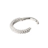 Clear CZ stones adorn the edge of the ring all around, making it a real eye-catching piece for your septum or ear piercings, like helix or daith. The ring material is high-quality 14K gold and is available in stylish white gold and classic yellow gold variations. The ring thread thickness is 1.2 mm, and you can choose the ring diameter between 8 mm and 10 mm.