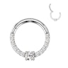 Hinged rings don't have any detachable parts, and the mechanism is effortless to use. Pull the small hinged segment open, insert the ring in the piercing, and close it by clicking the segment back in place.