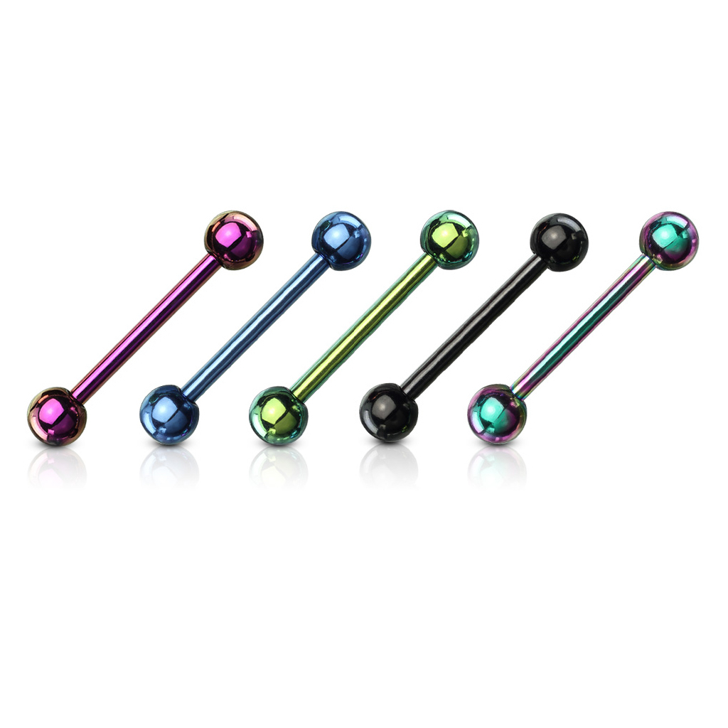 With this set, you will get five high-quality tongue barbells, all of them with titanium plating over surgical steel. Each of these tongue barbells has a different color, and one of them is multi-colored.