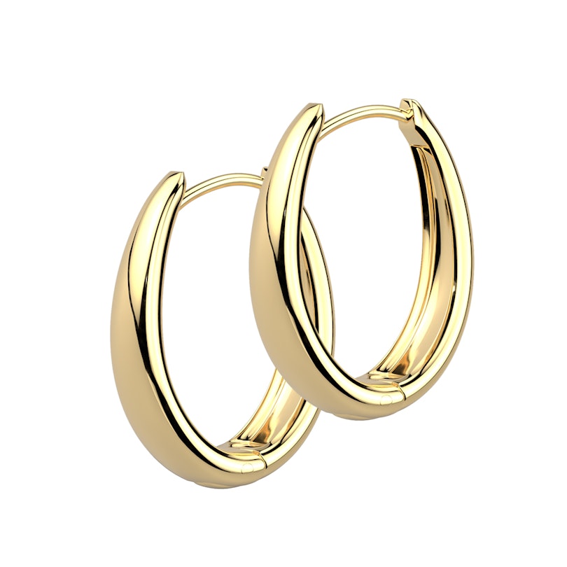 Ieškote išskirtinių žiedinių auskarų? Ką manote apie šią apvalių žiedinių auskarų porą? Šiuos iš tvirto chirurginio plieno pagamintus papuošalus galite įsigyti klasikinės sidabro arba aukso spalvų. Unikalus apvalus dizainas yra kiek platesnis apačioje, tad suteikia jūsų įvaizdžiui žavų akcentą. O dėl lengvo vyrių užsegimo juos galite lengvai įsisegti. Parduodami kaip pora ir akimirksniu papuoš jūsų ausis.