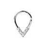This seamless twist ring is in a teardrop shape, with 5 delicate stones decorating the front of the piece. Being made from surgical steel, this ring is strong and won't lose it's shine. It is available in a choice of 1 mm and 1.2 mm thread thicknesses, meaning it can be worn in a range of piercings, including but not limited to: septum, tragus, and helix.