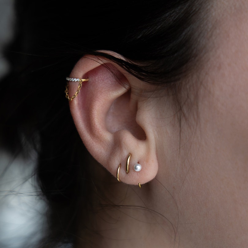 Atviras titano žiedas su perlu – paprastas jūsų auskarų į ausį kolekcijos atnaujinimas. Perlas įstatytas žiedo gale ir be vargo suteikia jums švelnesnį įvaizdį. Norėdami jį nešioti, atvirą galą nukreipkite per kaušelį ir pasukite į priekį, kol patogiai įstatysite. Galite nešioti viršutiniame arba apatiniame kaušelyje, arba derinti, jei to norisi.