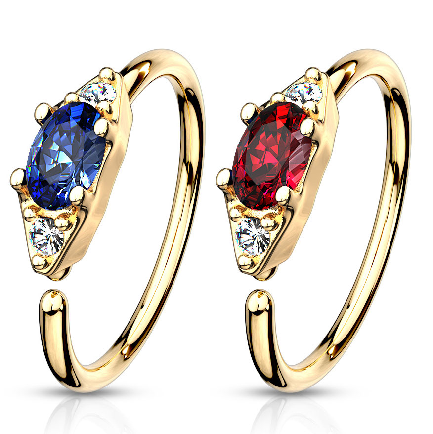 Žiedinis auskaras be užsegimo su ovaliu įvairių spalvų kristalu