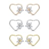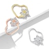 Hearts and flowers - you can’t possibly get anything more beautiful and feminine. This piece of jewelry features both. In the picture above, you can see a heart-shaped ear piercing and a flower charm studded with cubic zirconia stones. Since the flower is featured only on one side, you must decide what ear you want to wear it in. To do so, click the drop-down menu on the right of the picture and select the side you want the flower charm to be.