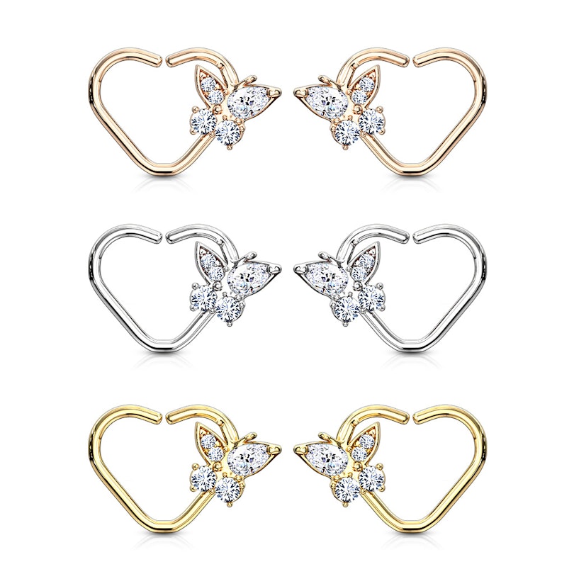 The piercing is crafted from a single piece of brass, which has then been coated to get the beautiful color options that you can see in the picture above. For example, you can get it in your choice of yellow gold or, if you prefer, rose gold. The inside measurements of this heart are 8mm width by 8mm height.