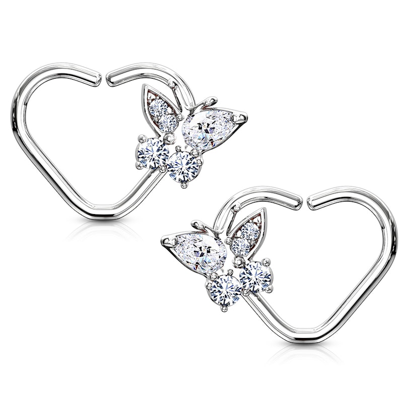 Pavadinimas: Auskaras į ausis su širdelę ant kurios tupi drugelis