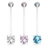 As you can see in the picture, the jewelry is available in three different colors. The flexible shaft is jeweled with a bezel-set top ball and a four-prong-set bottom gem. You can choose the color of these featured gems. Take a look at the menu on the right of the picture to select the one you like the best :)