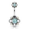 This belly ring includes several stones, both at the top and the bottom of the barbell.