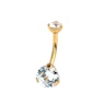 If you love belly rings with large gems, you're in the right place. In the picture above, you can see a belly button ring made of surgical steel, covered with different color layers. Both the top and the bottom balls have a beautiful zirconia stone, cut from different angles, which guarantees that light will reflect and shine like no other.