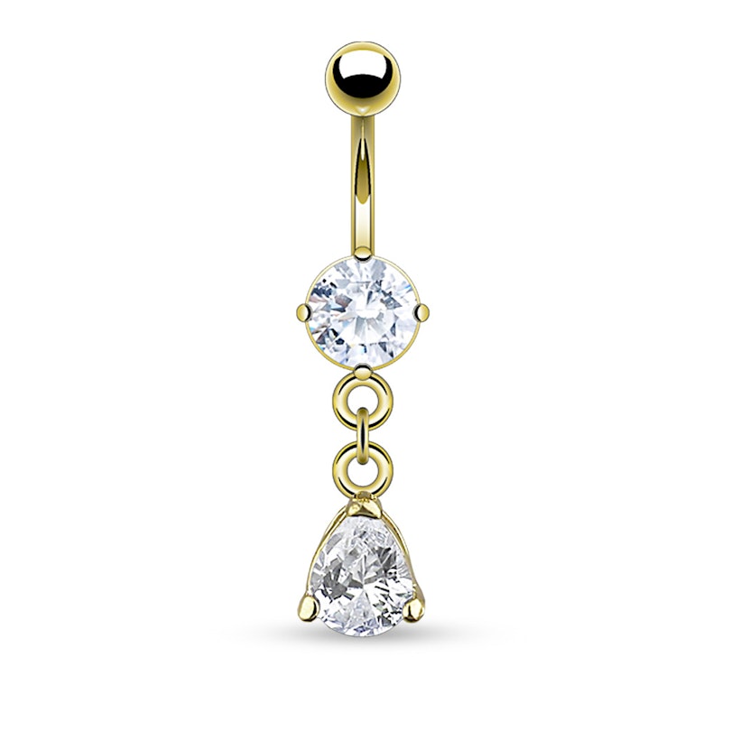 This lovely belly ring is made of 316L surgical steel and coated with 14-karat gold.