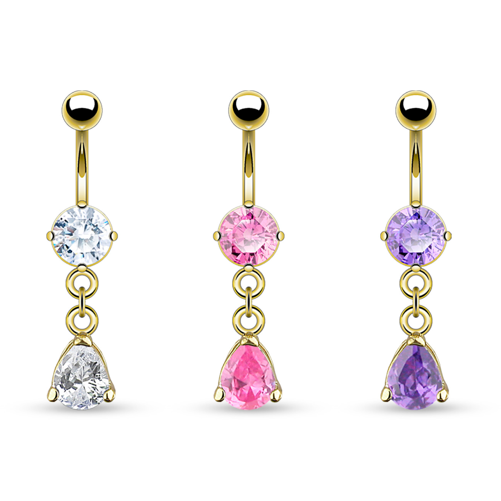 This lovely belly ring is made of 316L surgical steel and coated with 14-karat gold.