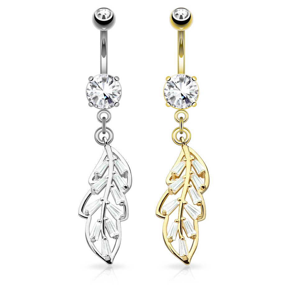 Most beautiful things around us come from nature or are inspired by nature. This belly button ring with a studded leaf dangle honors its origins elegantly.