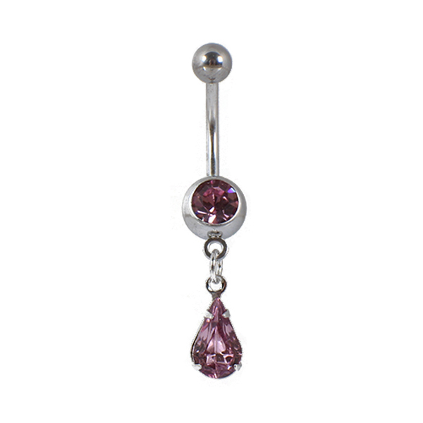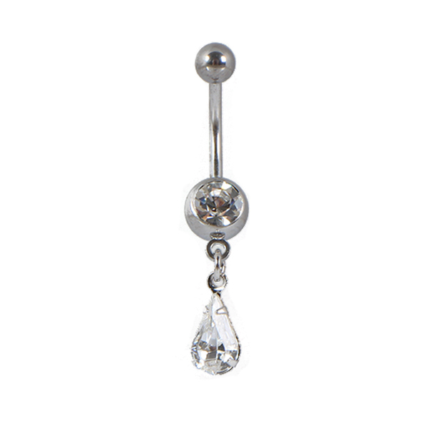 The barbell's dangle has a drop-shaped gem that will make your belly look fantastic despite the simple design. This belly ring is available in four different colors; choose your favorite one from the drop-down menu above.