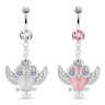 You won't find anything sweeter and more delicate than this belly button ring with an owl dangle. It's made of surgical steel, and it has a standard barbell of 3/8" (10 mm) in length. The top and bottom balls are decorated with beautiful stones in the color of your choice.