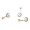The large faceted stone in the center of the bottom ball is the biggest sinner here - it's the one that will get most of the attention. But this ball is not alone; it's getting help from the little stones encrusted behind and surrounding it. These tiny stones also give the piece a sense of depth, which makes it look even better. To make it even, a stone matches the top ball - we thought of every detail to make this a perfect belly ring.