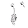 The balls of this belly ring are flat on the back, which means it will fit better against your skin. The jewelry material is surgical steel, decorated with clear CZ stones. The jewelry size is standard with 10 mm barbell length and 1.6 mm thread thickness.