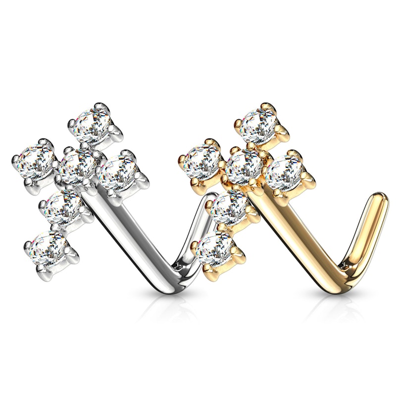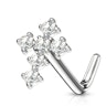 This is a spectacular nose piercing! Amazing from top to bottom, from the beautiful color of the cross to the L-shaped bar. This is not only a beautiful nose stud but also made in 14K gold, an excellent material. You may get it either in classic yellow gold or in white gold. The stud is made with a little hook, a bent angle of 90 degrees, which offers a double advantage: the structure won't allow the piercing to come off, and it also makes it easier to put it in.