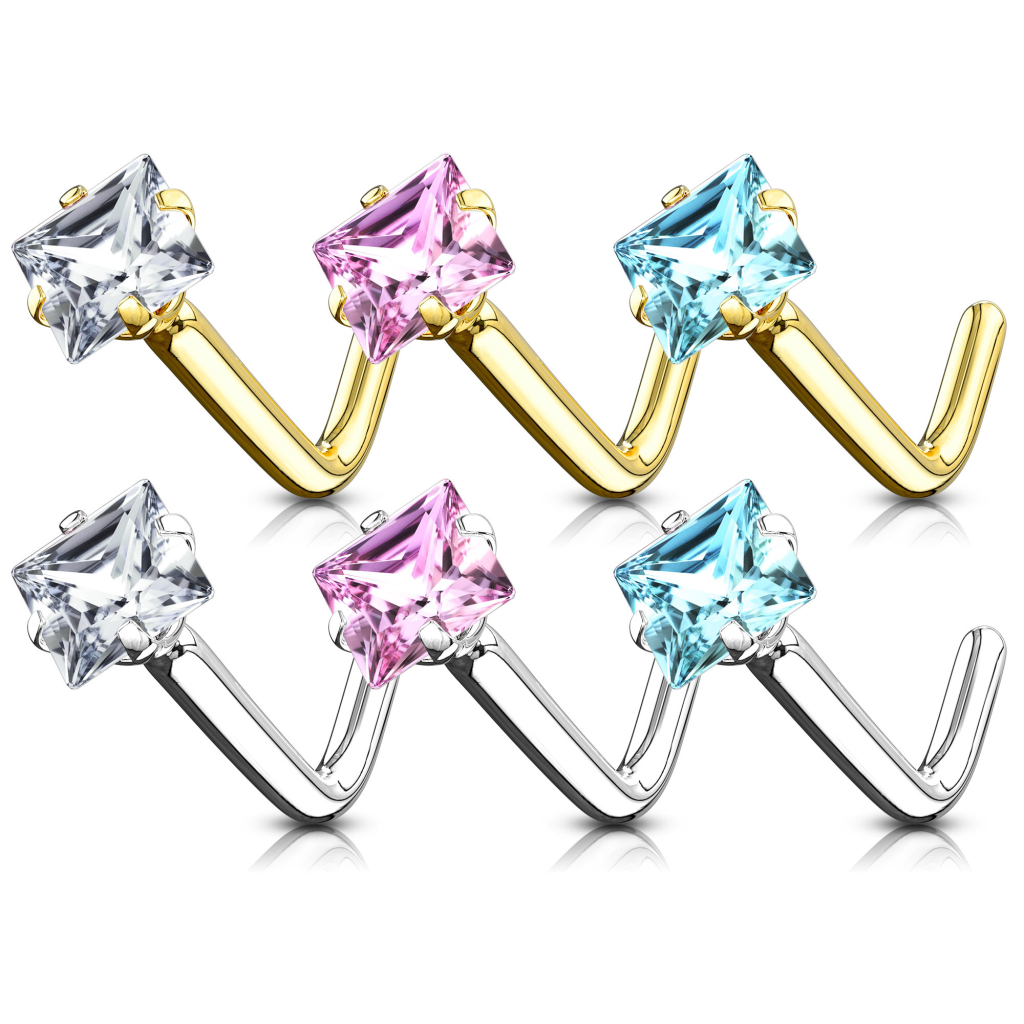 This nose stud is L-shaped, bent in the middle with a straight 90-degree angle. This makes the stud very useful with lots of advantages. It's incredibly easy to put in and take out, and it fits the nose piercing better than regular straight studs. On top of that, thanks to its design, the nose stud is very comfortable for the inner nostril.