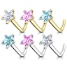 The stud has an L-shaped bar, bent with a 90-degree angle in the center. This detail makes it incredibly useful because it allows the stud to stay in the nose piercing without the risk of poking your nostril.