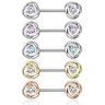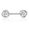 This exquisite and sexy jewelry will look perfect in your nipple piercing. The straight bar is made of surgical steel. There's a small rose made of brass on each end with a zirconia stone in the center. All the roses are plated with a color layer; the silver model has a metallic color, while the gold and rose gold models have a 14-karat gold plating.