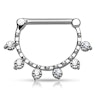 The arch holds pretty little balls, like snowflakes, that complete this sophisticated design. Last but not least, the icing on the cake is the six facet cut clear stones, which make this nipple clicker spectacular.