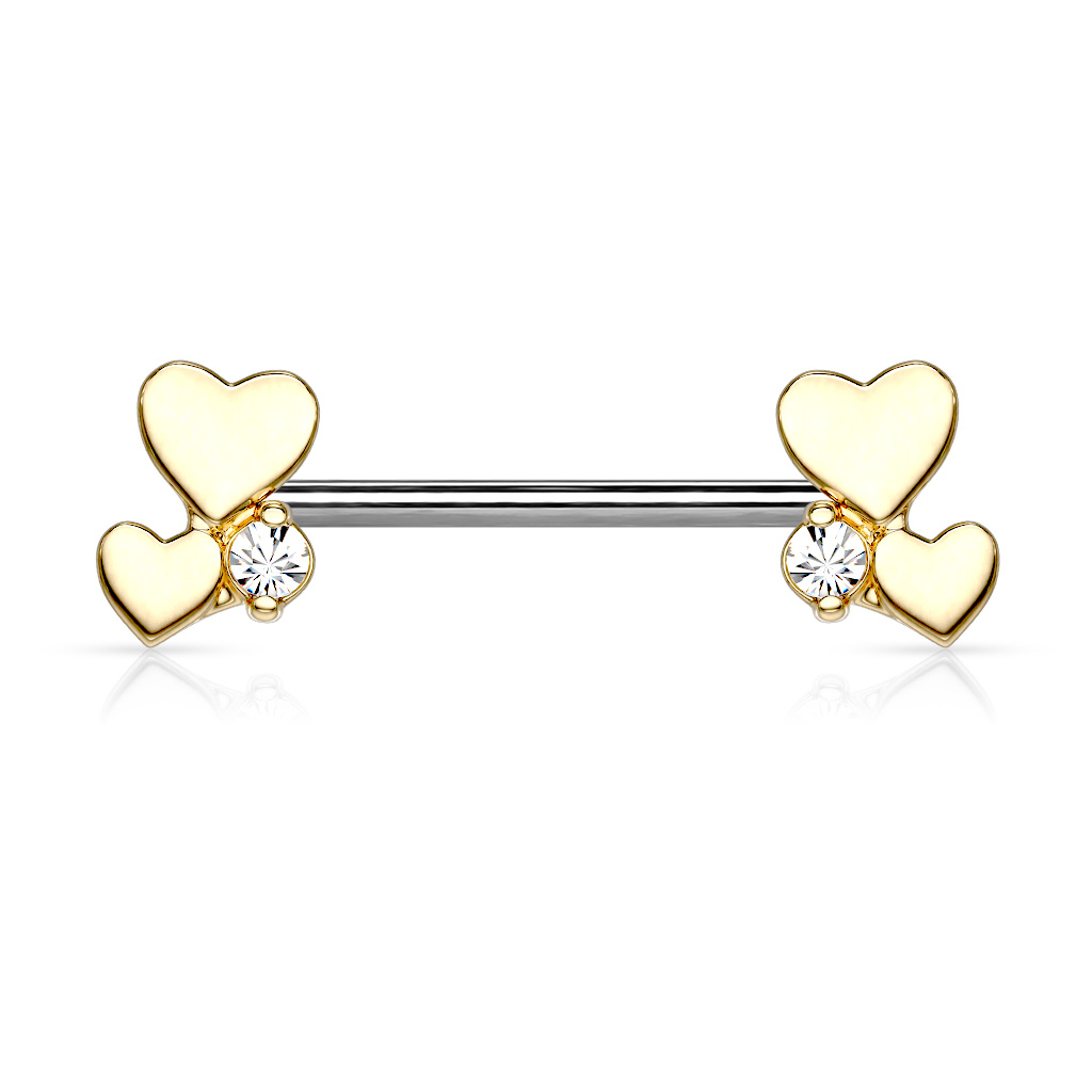 The nipple barbell is available in two different colors. You can select the heart ends either in gold or rose gold. Both are entirely identical except for the color.