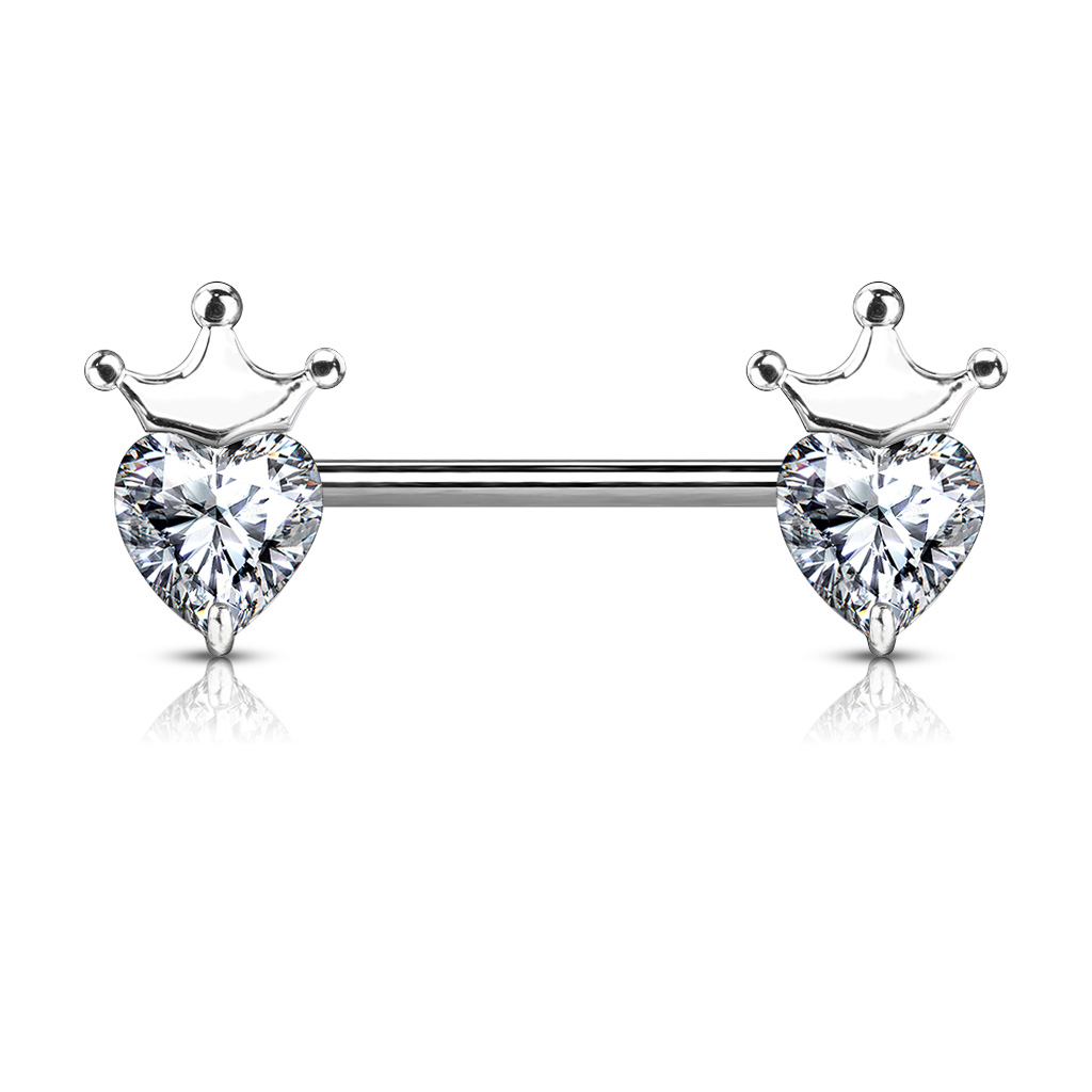 Are you looking for exclusive jewelry with a joyful touch for your nipples? Feel like a princess with this nipple barbell featuring two hearts and two crowns!