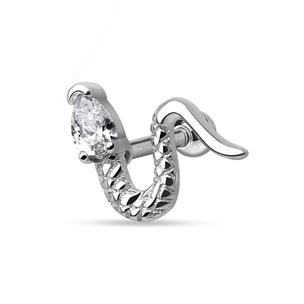 This beautiful snake ear stud has the right sizes for your tragus, helix, or earlobe piercings.