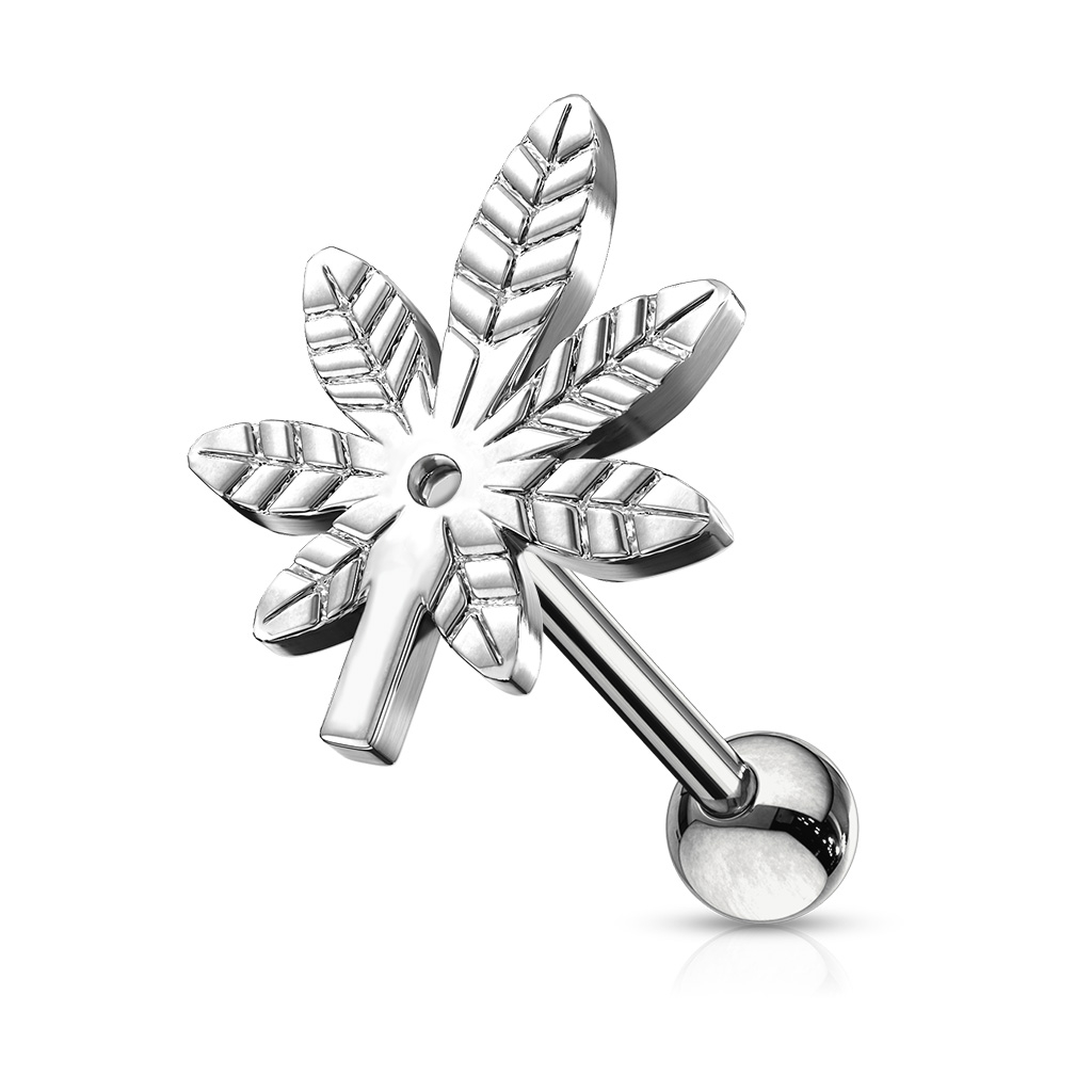 Auskaras uždaromas 3mm. kamuoliuku, kuris yra lengvai nuimamas norint išimti auskarą. Tokį auskarą dažniausiai galima panaudoti tik ausies pirsingams, tačiau jei tavo kito pirsingo išmatavimai tinka, gali jį panaudoti it kitur. Strypas ir kamuoliukas pagaminti iš chirurginio plieno, o lapas iš žalvario ir yra padengtas rodžiu
