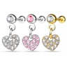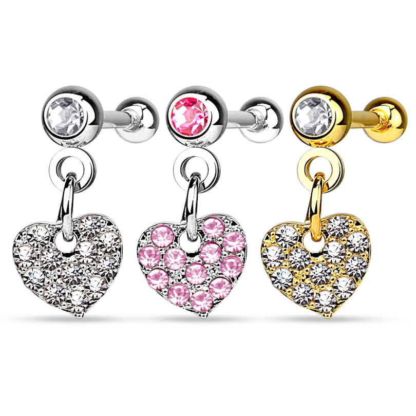 This stud has a ball of 5/32" (4 mm )with a stone, from which hangs a beautiful dangle. The dangle has a lovely heart, entirely studded with pretty crystal stones. The stones are cut like diamonds so that light reflects from every angle.