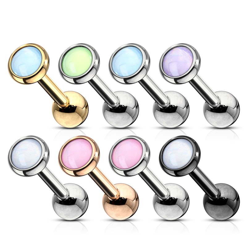 The bar is 16g (1.2 mm) in gauge and 1/4" (6 mm) in length, which is something you should be aware of if you are going to use this jewelry in any other piercing hole.