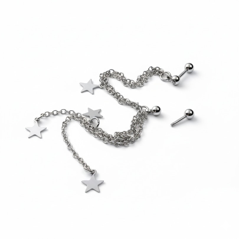 Pavadinimas: Tragus ir helix auskaras su žvaigždėmis