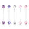 At each end of the bar, there's a beautiful acrylic ball. The balls are decorated with a beautiful glitter layer. The balls have a diameter of 1/4" (6 mm), and they're available in a variety of colors. Take a look at the menu on the right of the picture to select your favorite one.