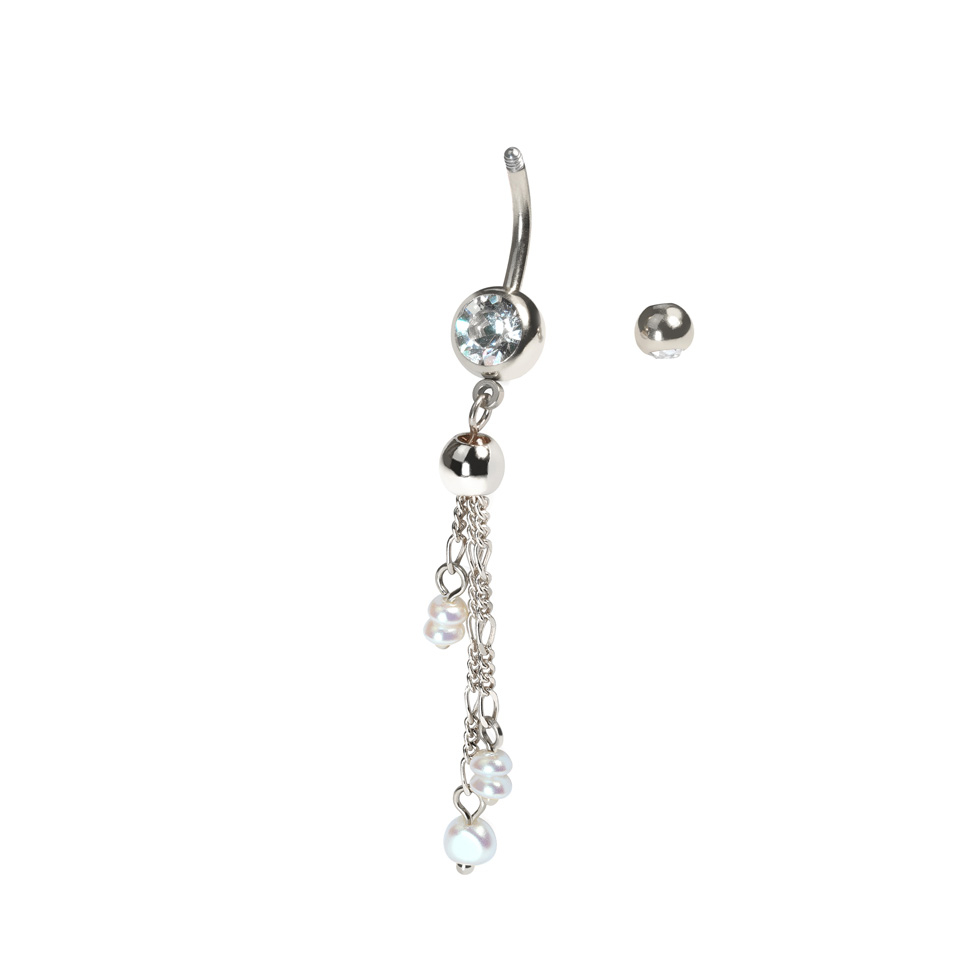 Bambos barbell auskaras su grandinėlėmis ir perlais
