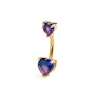 Šis barbell į bambą su dviejų atspalvių – rožine ir violetine – širdelėmis turi dvi mielas širdeles, kurios sukuria šaunų efektą: gali atrodyti rožinės arba violetinės spalvos, priklausomai nuo apšvietimo ir kampo. Viršuje yra mažesnė širdelė, kurios plačiausias skersmuo siekia 6 mm, o apačioje – didesnė, siekianti 7,5 mm.
