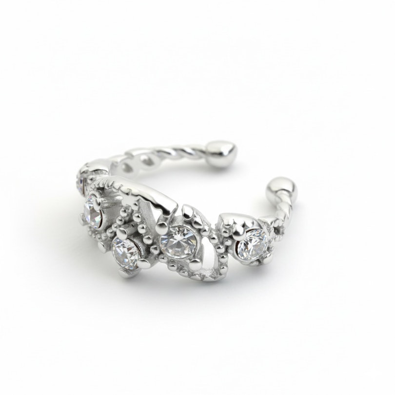 Pavadinimas: Beautiful ear cuff with gems and beads-silver