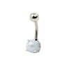 This surgical steel belly ring features a white opal held in place with a prong setting. This piece has an external thread - simply screw on the top ball to secure in your piercing. Available in a choice of gold or silver, this beautiful belly ring will bring your navel piercing to life.