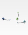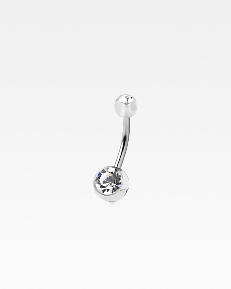 This is a simple but beautiful belly ring to wear every day at a very competitive price. The barbell is made of surgical steel, and the top and bottom balls are made of acrylic. Both have a bezel-set stone that you can get in five different colors. If you select the white one, you will get a classic style. If you want a more daring color, get one that looks great in contrast with your skin.
