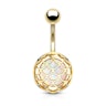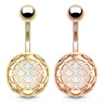 The curved barbell is surgical steel, and the bottom bead is crafted from brass. The whole piece is plated to get the different color options you can see in the picture: yellow gold and rose gold.