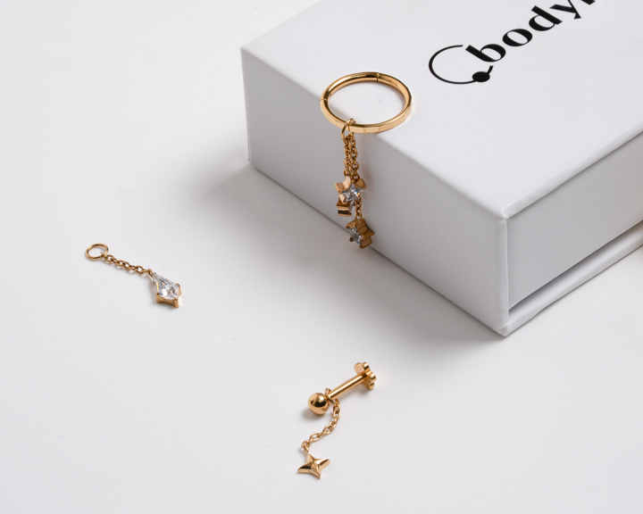 Derinkite pakabukus su huggy auskarais, žiedais, net labret ir bambos papuošalais, kad sukurtumėte unikalų įvaizdį.