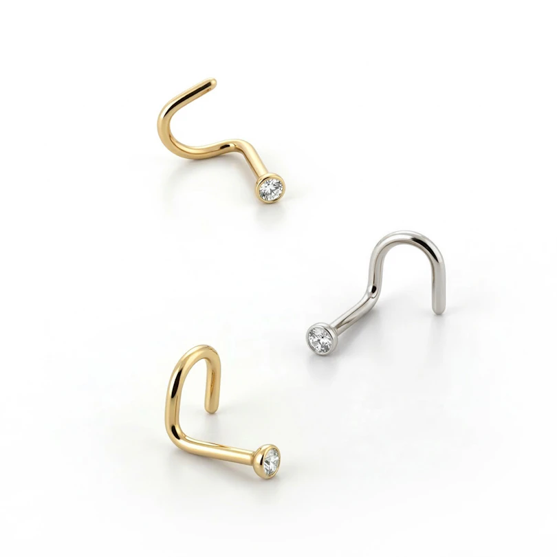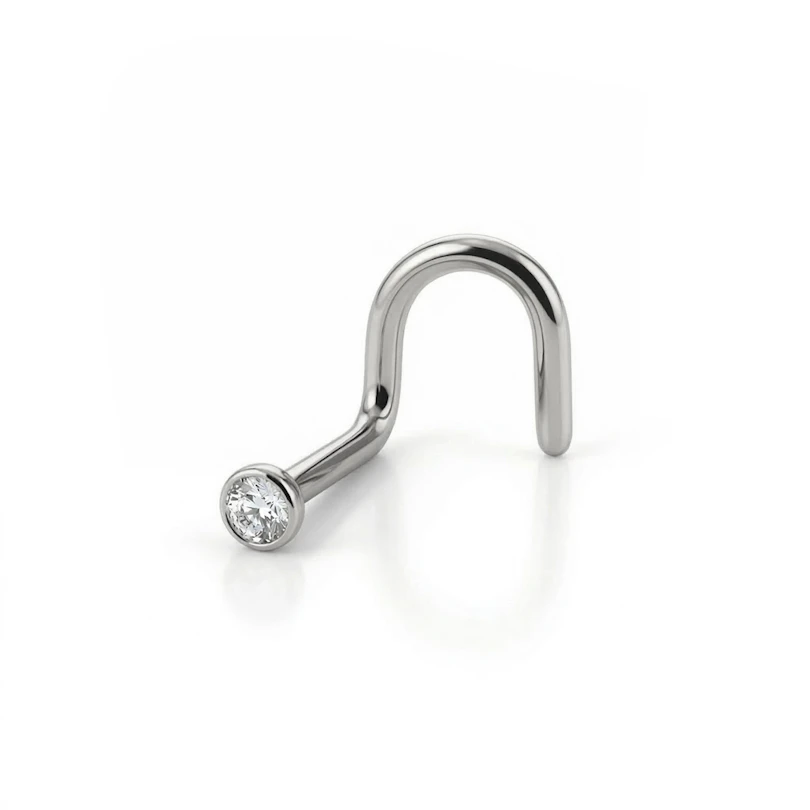 Nose screws own their name to the shape of the bar. To put it in your nose piercing, you need to twist the screw to get it in and flip it up until it's all the way in.