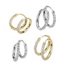 Pasitikite savo naująjį favoritą: šiuos pave tipo žiedinius huggie auskarus. Pagaminti iš patvaraus chirurginio plieno, jie ilgai jums tarnaus. Abu žiediniai auskarai yra papuošti blizgiomis kubinio cirkonio akutėmis, suteikiančiomis tinkamą blizgesį, tačiau nebadančiomis akių.