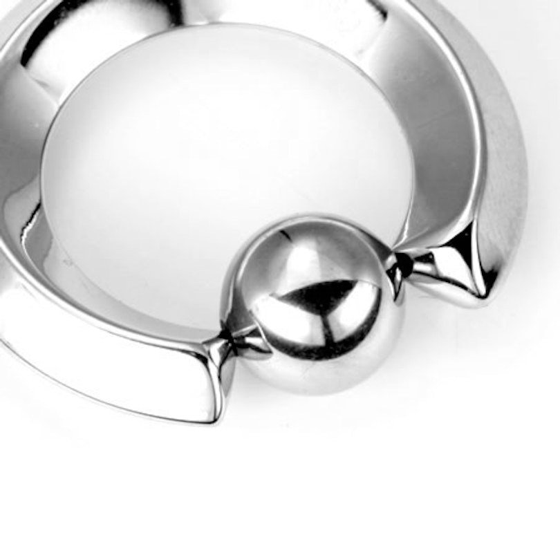 This captive bead ring is available in different sizes, with the smallest model in approx. 12g (2 mm) and the biggest one in approx. 0g (8 mm). The material is surgical steel, strong and durable. So strong that we strongly recommend that you get a ring opener if you don't have one. You may even find it tricky to take out the ball from the smallest model. Or it may be that here in the warehouse we aren't strong enough. :)