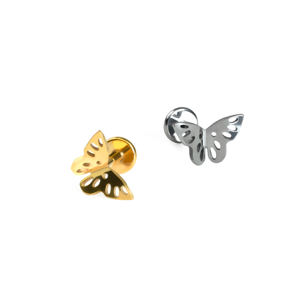 This beautiful labret features an intricately designed butterfly that looks like it's ready to take flight Crafted from premium titanium, it’s hypoallergenic, super strong, and built to last—perfect for all-day comfort and a lifetime of wear. Available in a choice of lengths and with a 1.2 mm thread thickness, this piece is great for cartilage and lip piercings. Plus, the internal threading means only the smooth stem goes through your piercing—just screw on the top for an easy, secure fit.hypoallergenic, super strong, and built to last—perfect for all-day comfort and a lifetime of wear.