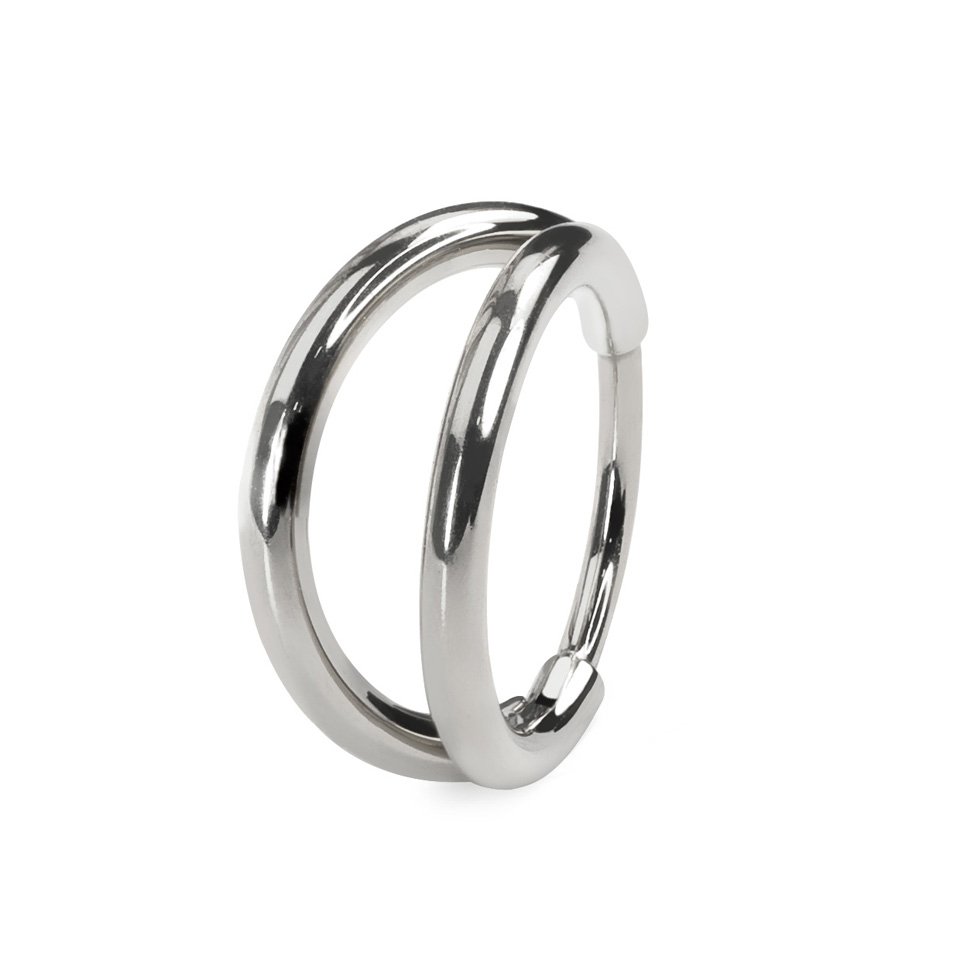 This simple ring has two hoops that come together as one to go through your piercing, giving the look of two rings.