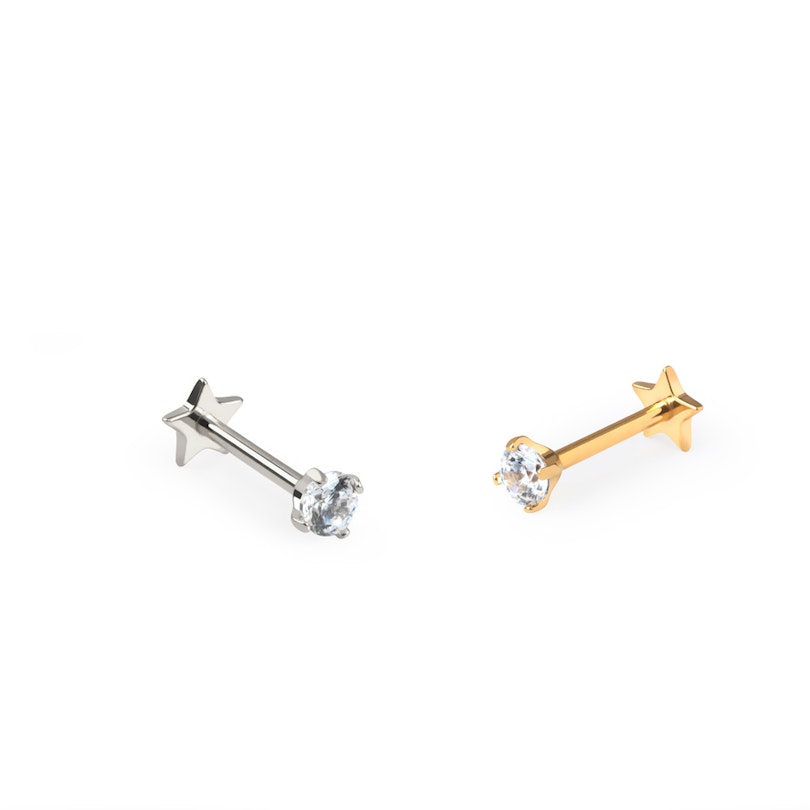 This titanium labret features a star shaped flat back, perfect for piercings such as helix or lobe where the back of your jewelry is visible.