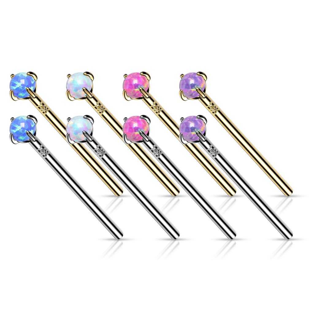 Auskarą puošia sintetinis opalas, kuris yra labai tvirtai užfiksuotas strype. Galimas opalo spalvas gali pamatyti šiame paveiksliuke. Taip pat turi nuspręsti kokio auskaro nori: iš balto ar geltono 14k aukso.