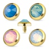 Simplicity and beauty characterize dermal top gems, and this top, in particular, is a good example. It’s a high polished surgical steel, in a very classic and ever-trendy silver tone. You can also get it in a golden model, which will give you an elegant look, probably a more classy one than a silver base. This base is jeweled with a beautiful opalite to make this piece a delight.