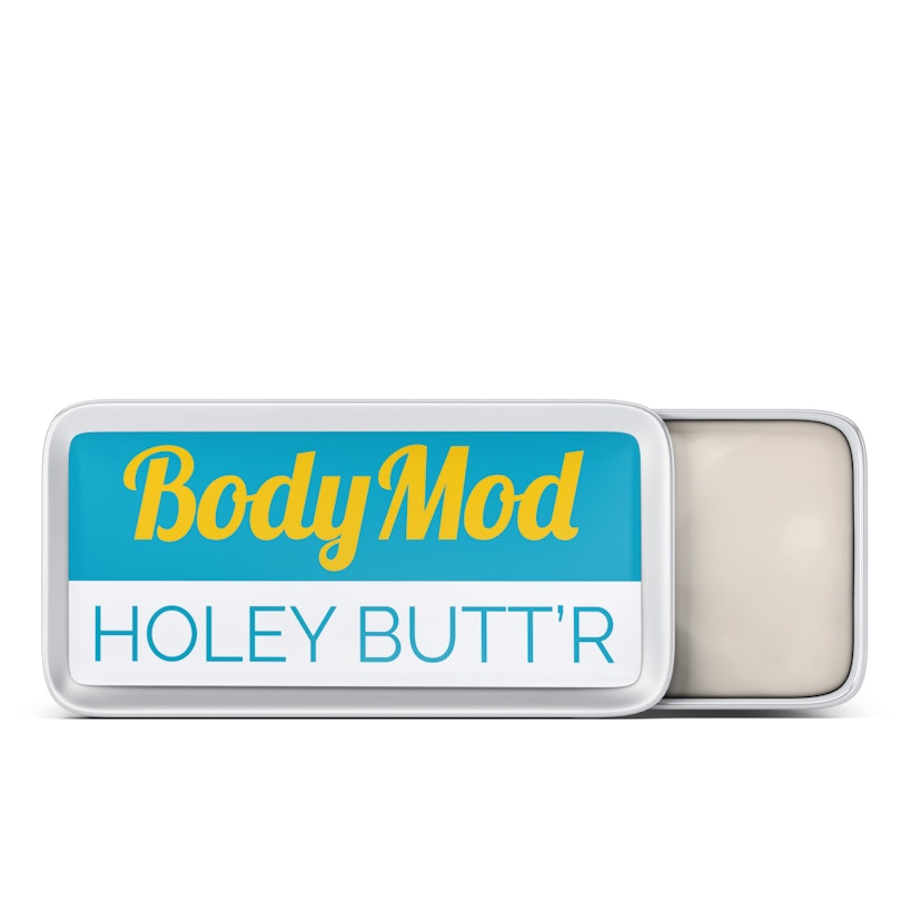 Holey Butt'r is a vegan healing treatment product that will help you keep your stretched piercings or gauges in good shape. It contains a natural blend of different products and moisturizing ingredients in the same product.