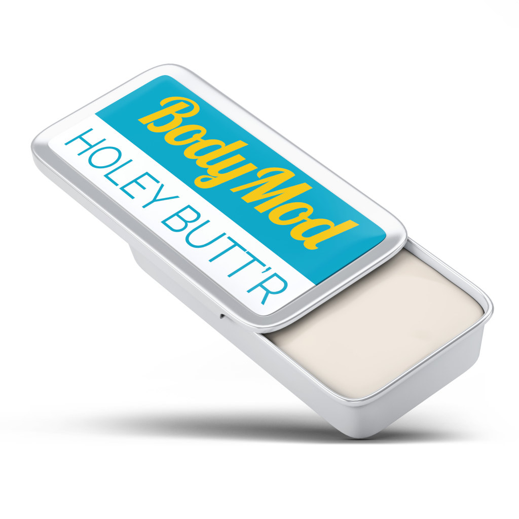 Holey Butt'r is a vegan healing treatment product that will help you keep your stretched piercings or gauges in good shape. It contains a natural blend of different products and moisturizing ingredients in the same product.